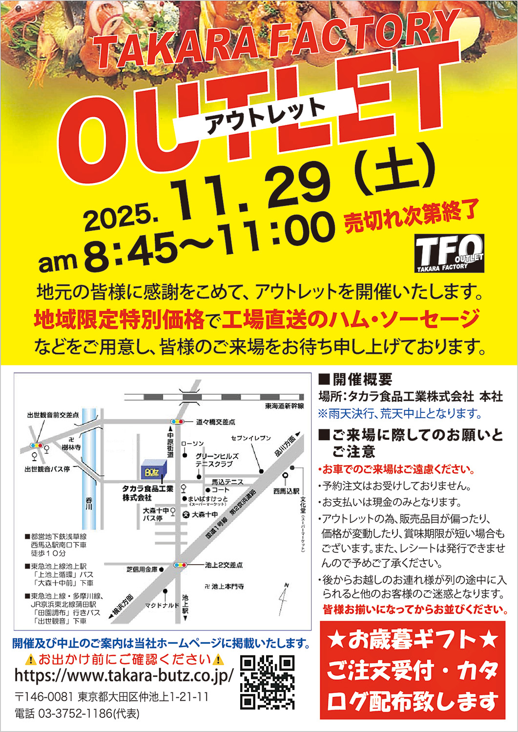 第142回タカラファクトリー・アウトレットの開催をご案内いたします。